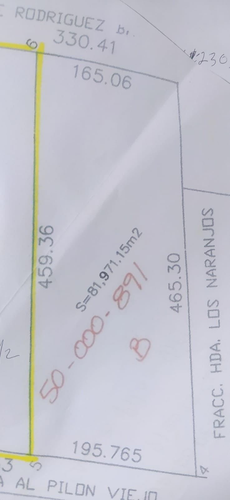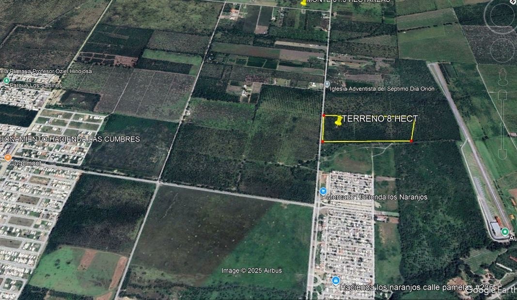Venta de Terreno ZONA URBANA Ubicado en la Mpio de Montemorelos NL por camino a Pilón Viejo con frente de 182 metros y de fondo 465 metros lineales, Colindante al Fracc Hda Los Naranjos lado Sur